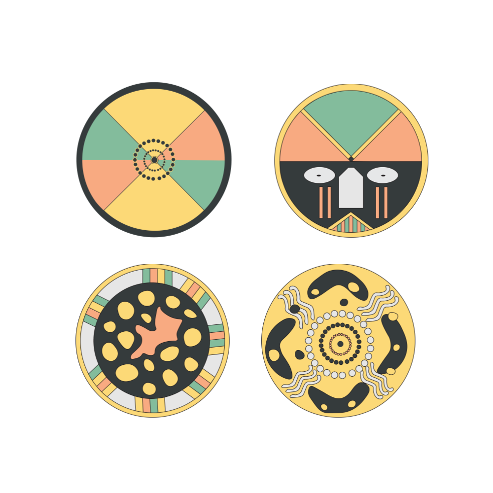 Personal project experimenting with hand-drawn borders and logo symbols, traced digitally and limited to a four-color scheme for a playful, cohesive design.